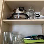 Staying at this apartment, guests have access to a balcony equipped with an air conditioner.